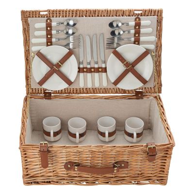 Willow picnic basketWillow picnic basket for four people, with stainless steel cutlery with plastic handles, four ceramic plates, and four 0,21 ml ceramic mugs, in brown color