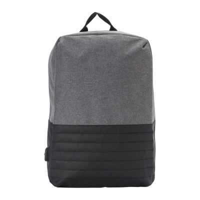 backpackTwo-tone backpack with multiple zipped compartments, inside organiser pockets, padded laptop (17") compartment, ergonomic back and shoulder straps. With anti-theft pocket, trolley strap and built-in USB connection for power banks. 400D polyester.