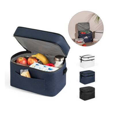 Thermal bag in 600D recycled polyester with adjustable webbing strapThermal bag in 600D recycled polyester with adjustable webbing strap. Composed of 1 spacious main compartment and 1 front pocket. The PEVA-lined interior ensures good thermal insulation and keeps you cool for longer. Capacity 6 L