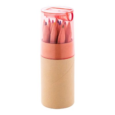 pencil set12 pc coloured pencil set in round cardboard case with plastic sharpener.