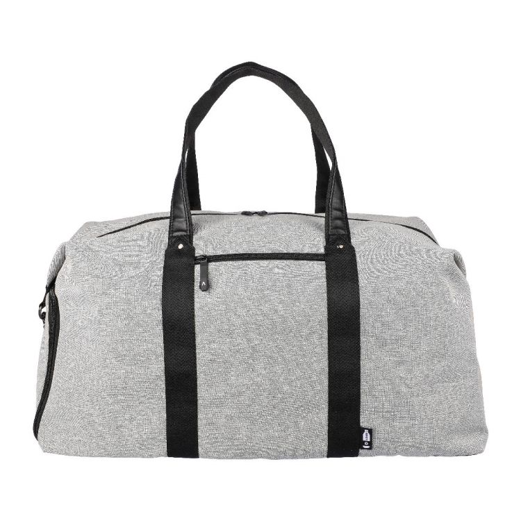 600D recycled polyester duffle bag with 150D PU lining and PU leather details. With 4 mm foam on the inside and a 1 mm PE board. Includes a small zippered compartment on the front, a large zippered compartment, and a shoe pocket on the side. Adjustable shoulder strap and two large carrying handles. Includes an rPET label on the front.