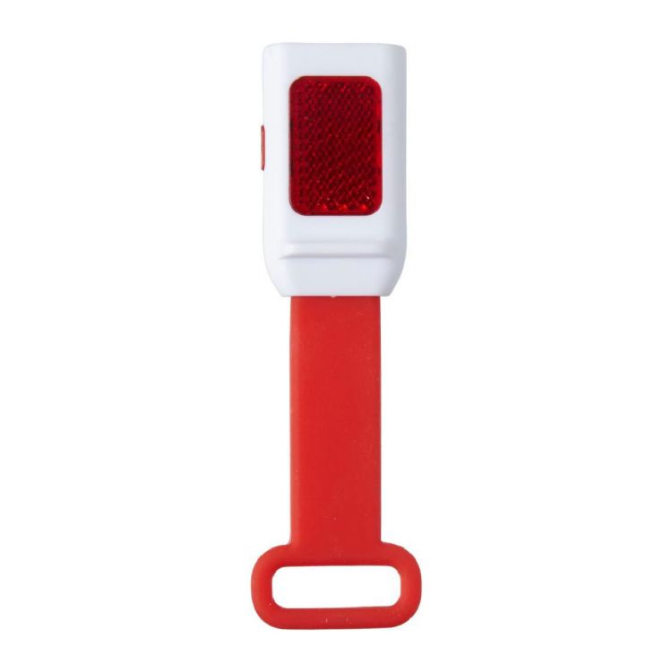 ABS bicycle light with three LED lights in the front and one LED light on the top. With silicone strap. Batteries included.