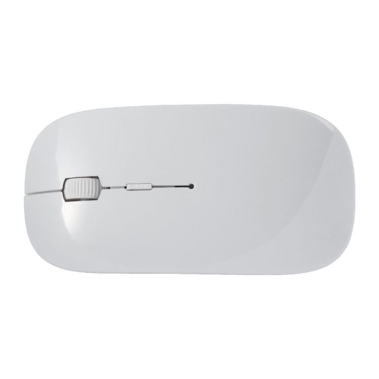 ABS wireless optical computer mouse, 2,4Ghz. An energy saving mouse with hidden Nano receiver and scroll wheel in the middle. Batteries included.