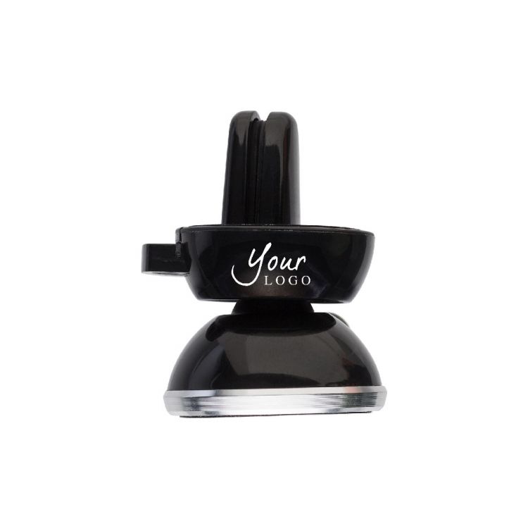 ABS smart phone holder for in the car. Attaches to the air vent. Place the metal plate on the back of the phone (adhesive) and the phone will be held in place by a magnet.