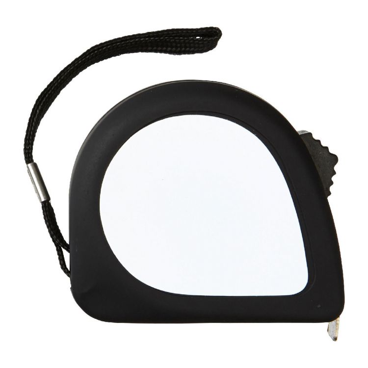 Metal and rubber tape measure (2 meter) with a wrist strap and belt clip attachment.