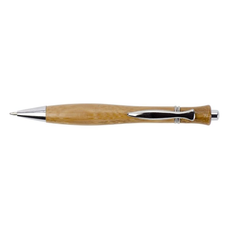 Bamboo ballpen with metal parts. Black ink.