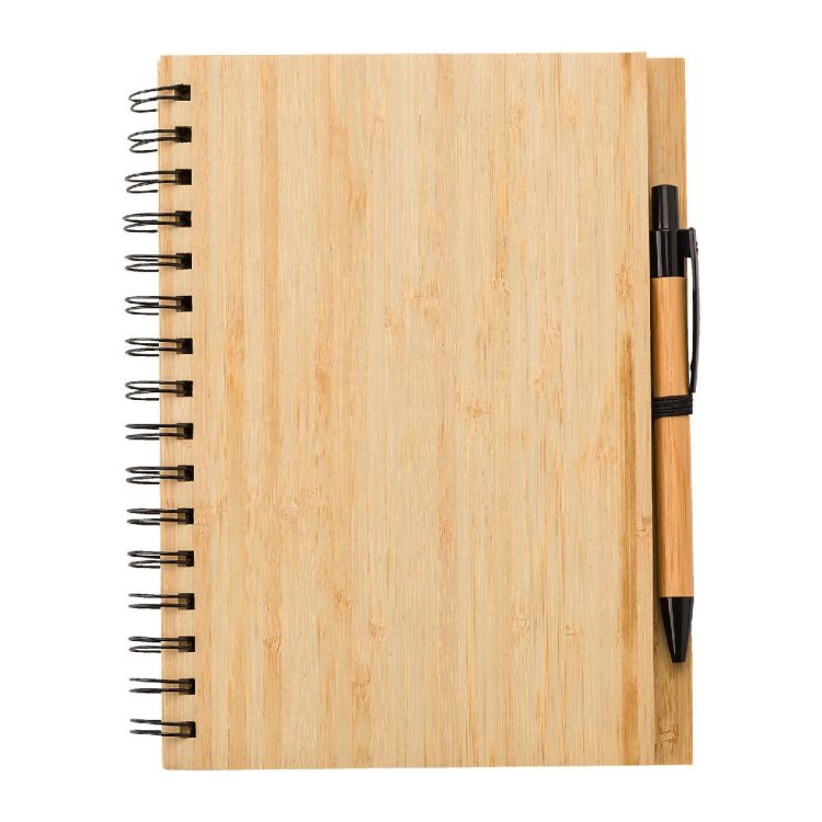 Bamboo notebook A5 with 80 lined pages including bamboo ballpoint pen with ABS top and tip. Blue ink.