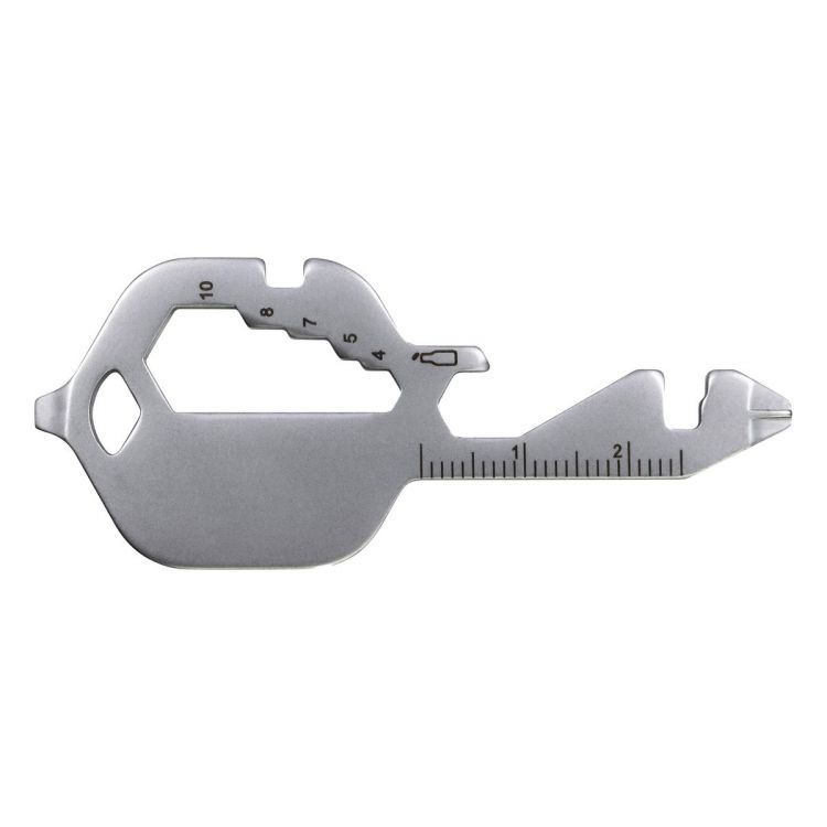 The Kee Shape multi-tool, crafted from durable 2CR13 martensitic stainless steel, combines 12 essential tools in a compact, key-shaped design for easy attachment to any keychain. It includes a bike spoke wrench, spanners (sizes 4-10 mm), bottle opener, Phillips and flat screwdrivers, wire bender, and both centimeter and inch rulers. Packaged in a sleek black box, it’s a convenient, all-in-one tool for everyday needs, in silver color
