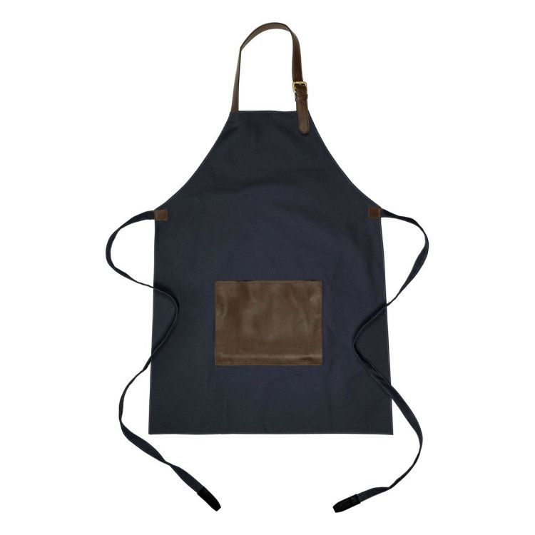 Canvas apron (450 gsm) with rPET PU front pocket and adjustable neck strap. Water-repellent.