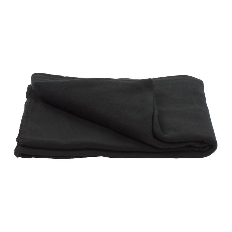 Fleece (165 gr/m²) travel blanket with nylon carrying handle, unfolded size +/- 115 cm x 135 cm.