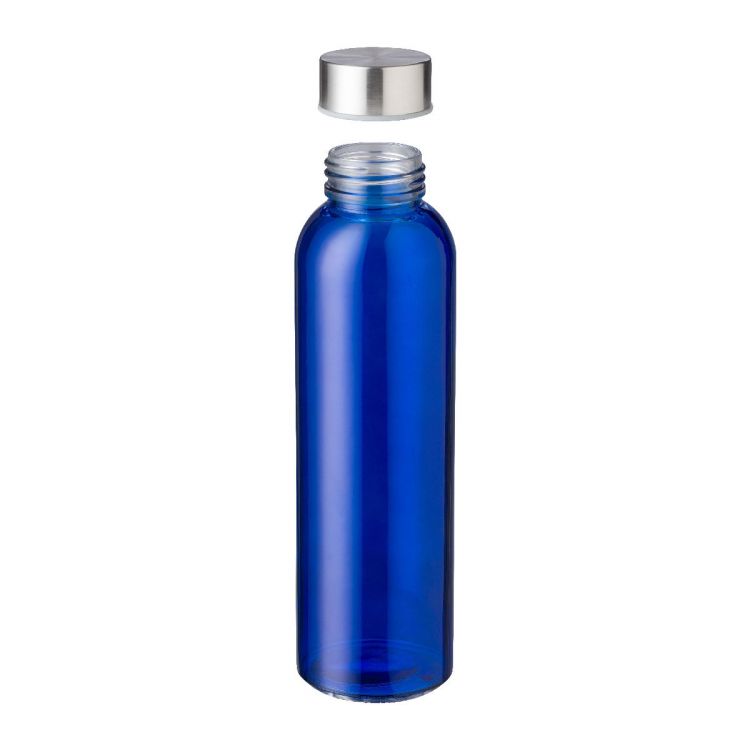 Glass drinking bottle (500 ml) with stainless steel lid. Individually packaged in a brown cardboard box.