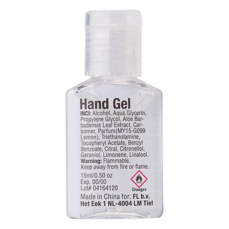 PET container with hand gel (15 ml), ethanol free.