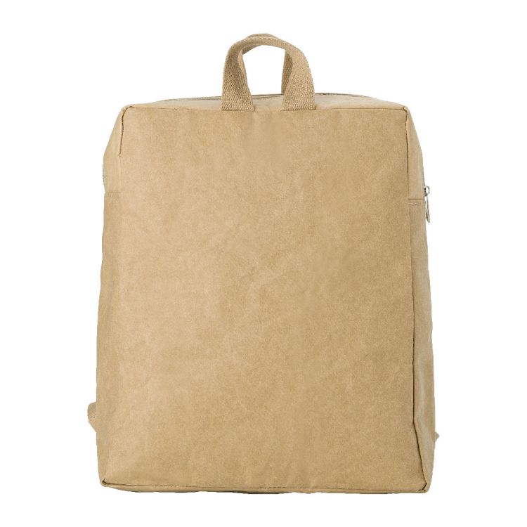 Laminated paper backpack (310 gr/m² paper) with main compartment with zipper. Including handle and adjustable shoulder straps. Maximum load weight: 7kg.