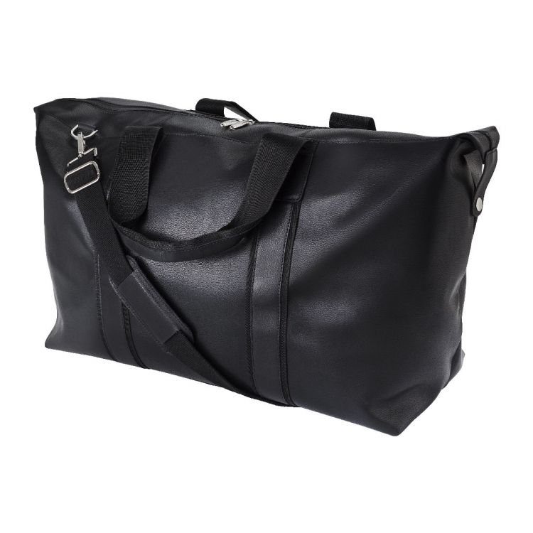 Leather sports bag with zipper. The inside has a small, zippered compartment. With two short leather and nylon handles and one nylon adjustable shoulder strap.