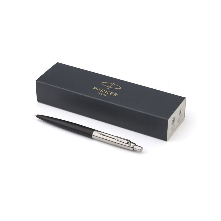 Stainless steel Parker Jotter XL ballpen. Blue ink. The XL Jotter is longer, wider, and heavier than the Original which people with larger hands prefer to write with. Pen pre-packaged in giftbox.
