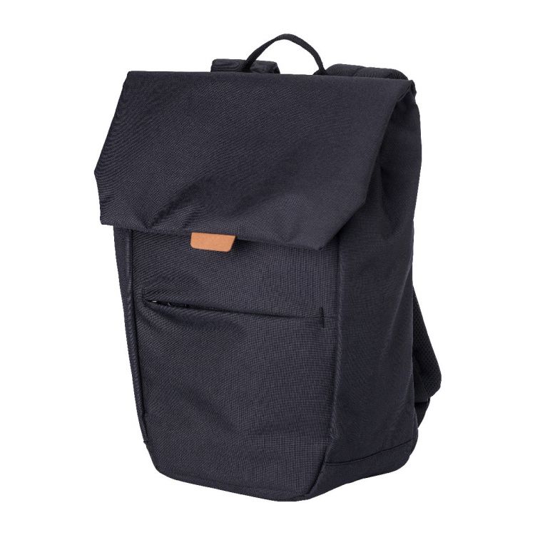 Polyester (600D) two-tone backpack with PU label on the flap. One zippered pocket on the front side. One large compartment on the top side with a metal closure. Laptop compartment suitable for a 15-inch laptop. The backpack has a reinforced backside and adjustable straps.