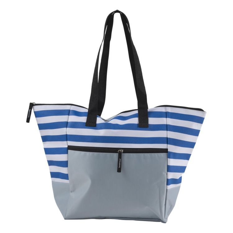 Polyester (600D) beach bag with zipper and front pocket with zipper.