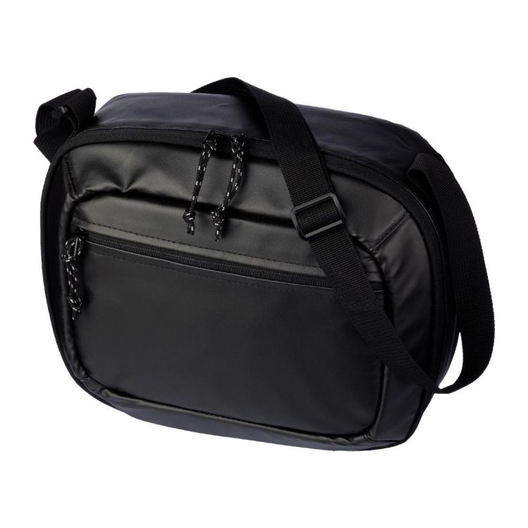 Polyester (600D) and TPE cooler waist bag with PEVA foil lining. Large zippered compartment on the topside and a zippered pocket on the front side. Long adjustable shoulder strap.