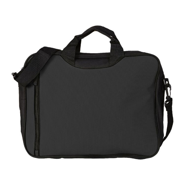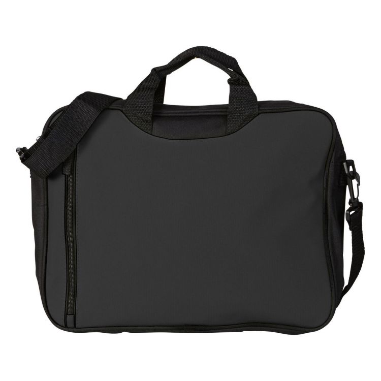 Polyester (600D) shoulder bag with two zippered compartments and an adjustable shoulder strap.