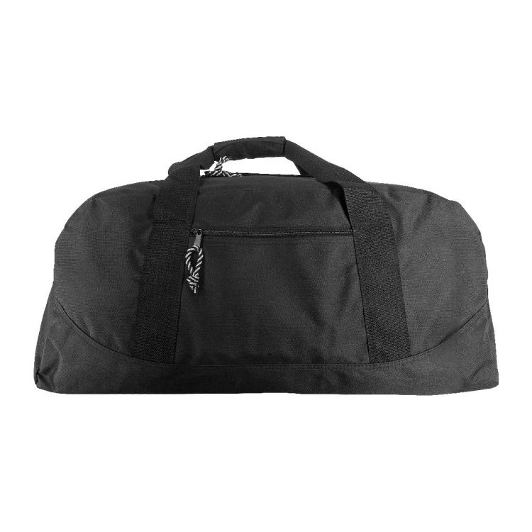 Polyester (600D) sports bag with front zipped pocket and adjustable shoulder strap.