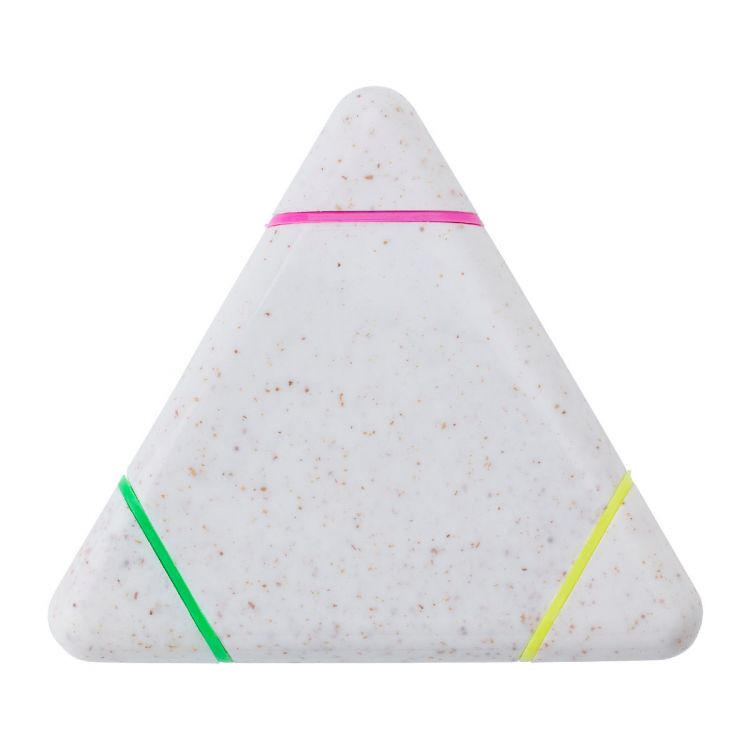 PP en wheat straw highlighter with three colors: pink, green and yellow.
