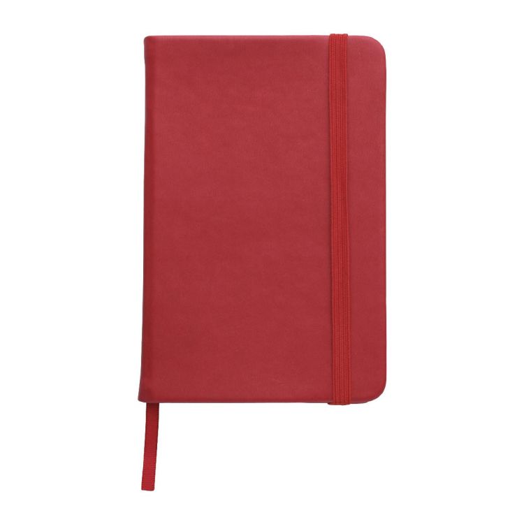 PU notebook (approx. A5), with 96 blank pages, ribbon marker, and elastic band over the cover.