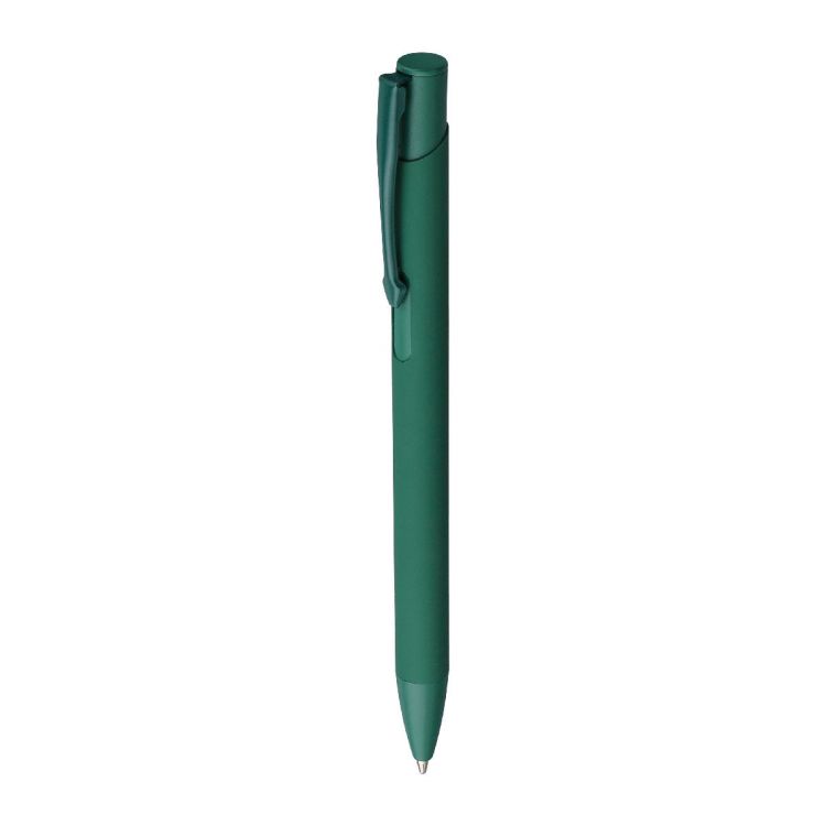 Recycled aluminum ballpoint pen with a rubberized coating on the body. The clip, tip, and pusher are in matching color. The clip is made from metal and the tip from plastic. Approx. 800 meters of writing length. Includes engraved recycled aluminum logo. Blue ink.