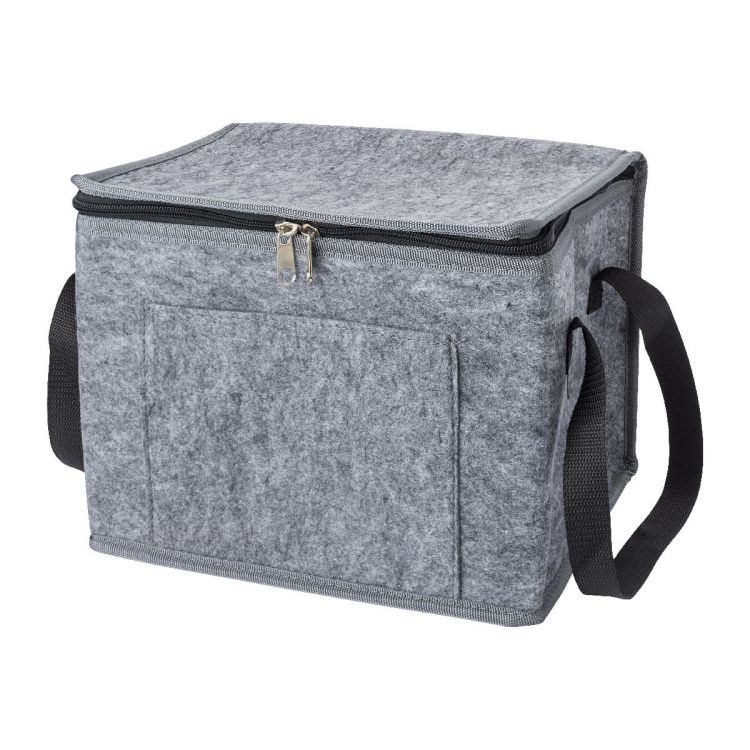 rPET felt cooler bag with aluminium foil interior and front pocket.