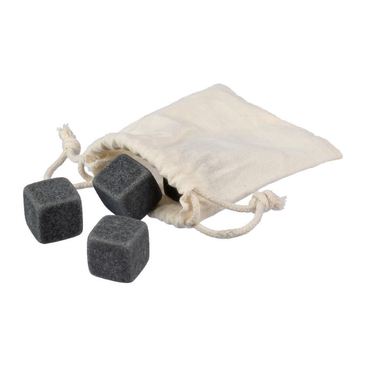 Stone ice cubes, set of 4 reusable natural stones. Stones need to be placed in the fridge to cool. Packaged in a cotton drawstring pouch.