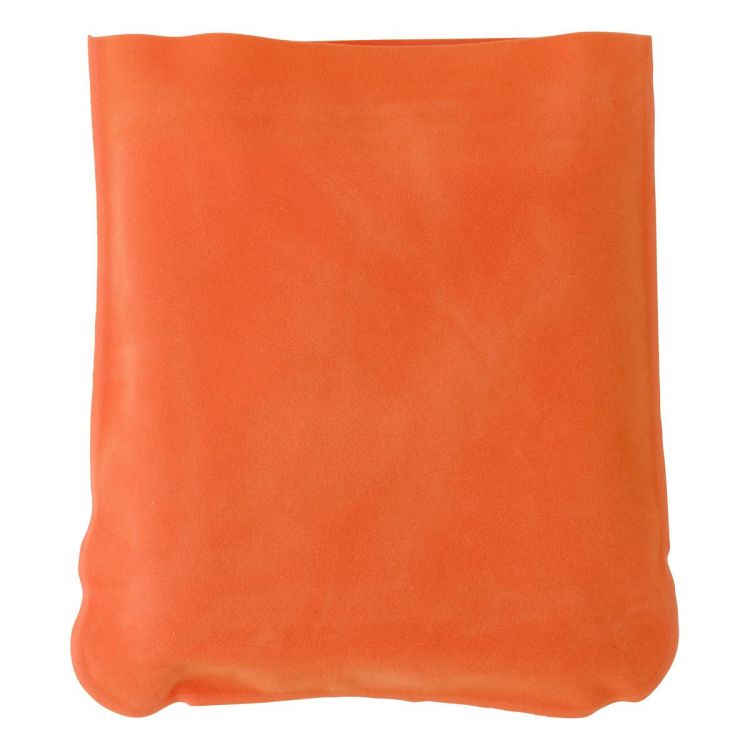 Inflatable velour travel cushion in velour pouch.
