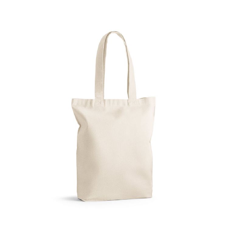 100% cotton bag (220 g/m²), with 65 cm handles. Product produced under a certified standard for the use of harmful substances in textile. Product in neutral color