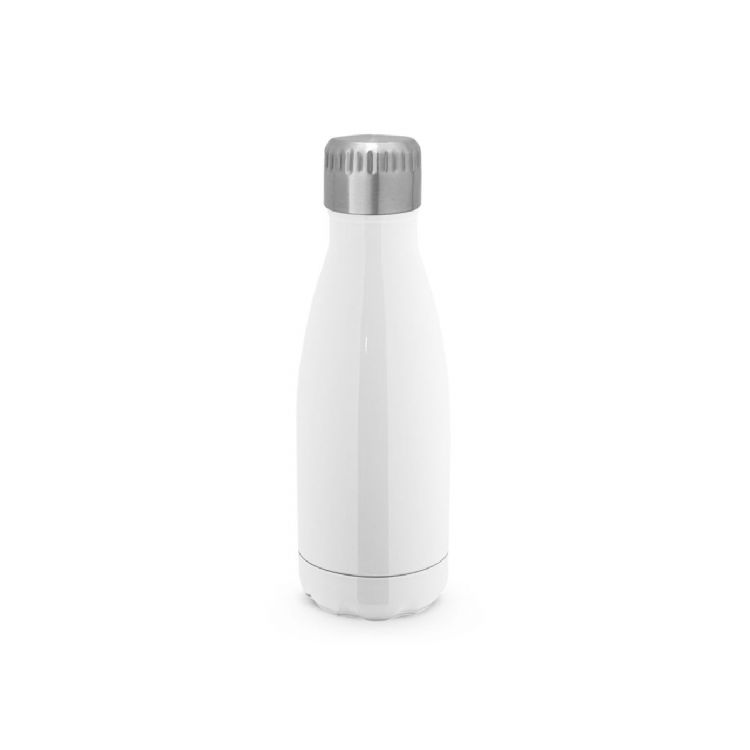 Stainless steel sublimation bottle with vacuum-insulated double wall and lid with vacuum system. Capacity up to 380 mL. Supplied in a gift box. Product in white color