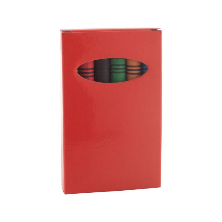 Paper covered coloured crayons (6 pcs) in coloured paper box.