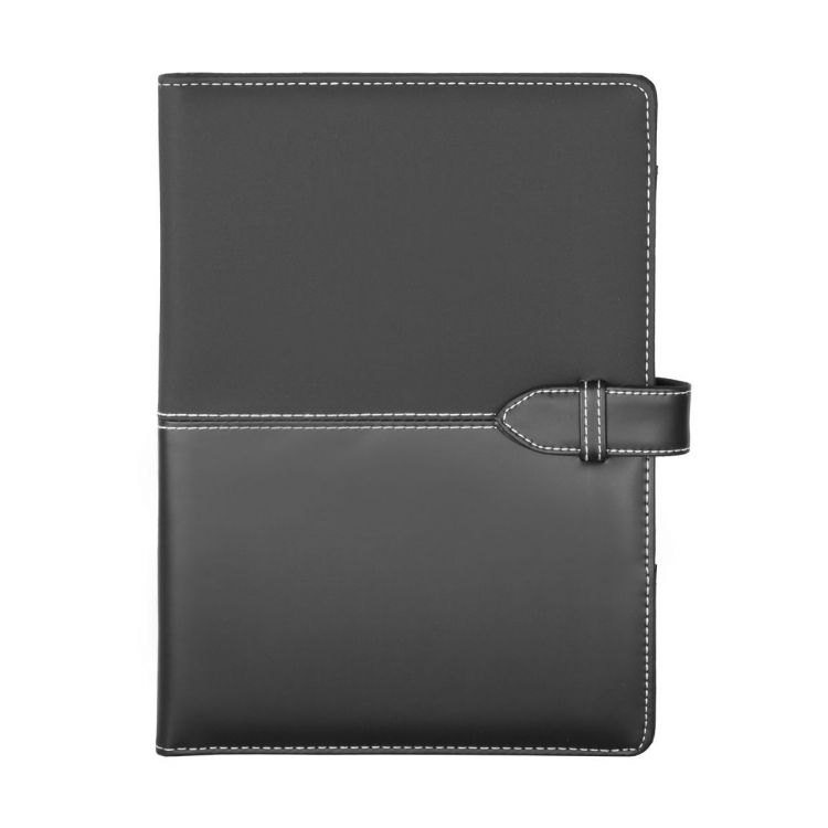 A5 sized, PU leather document folder with 20 lined sheets notepad and pen holder
