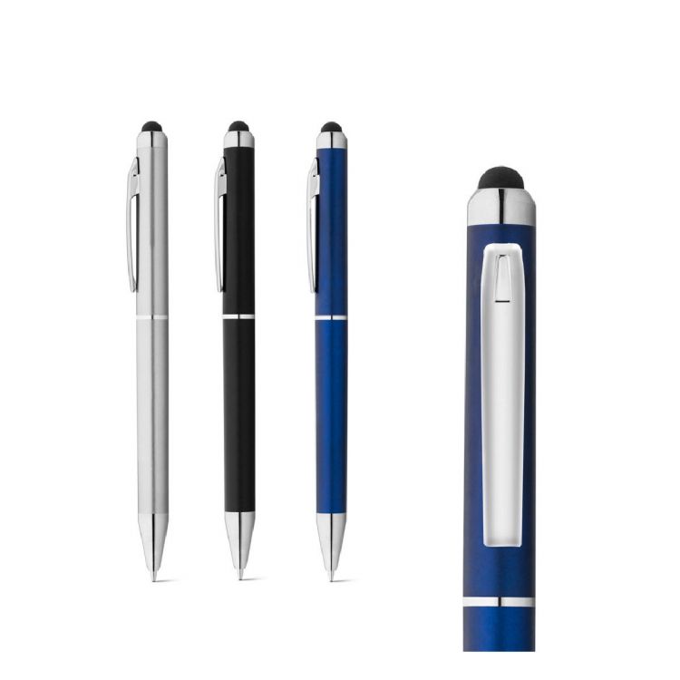 ABS ball pen with metallic finish, metal clip, twist mechanism and touch tip. Black ink