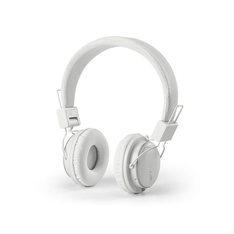 Foldable and adjustable ABS headphones with padded ear cups for comfort. Features BT transmission and TF card reader. The headphones have autonomy up to 4 hours and the following functions: call answering, volume control and easy mobile device playlist and FM radio connection. They include a USB cable for charging and are supplied in a gift box. Product in white color