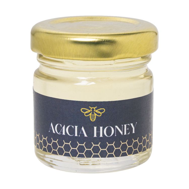 Acacia honey in clean glass jar with metal lid, 50 grams