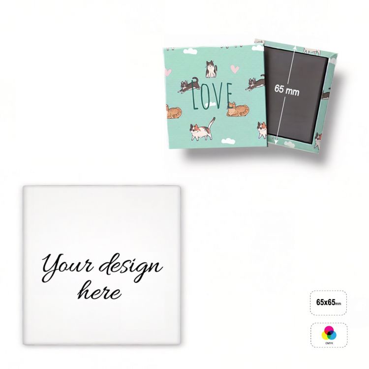 Square magnet made of acrylic material coupled with magnetic foil. The product is fully customisable with full colour UV printing.