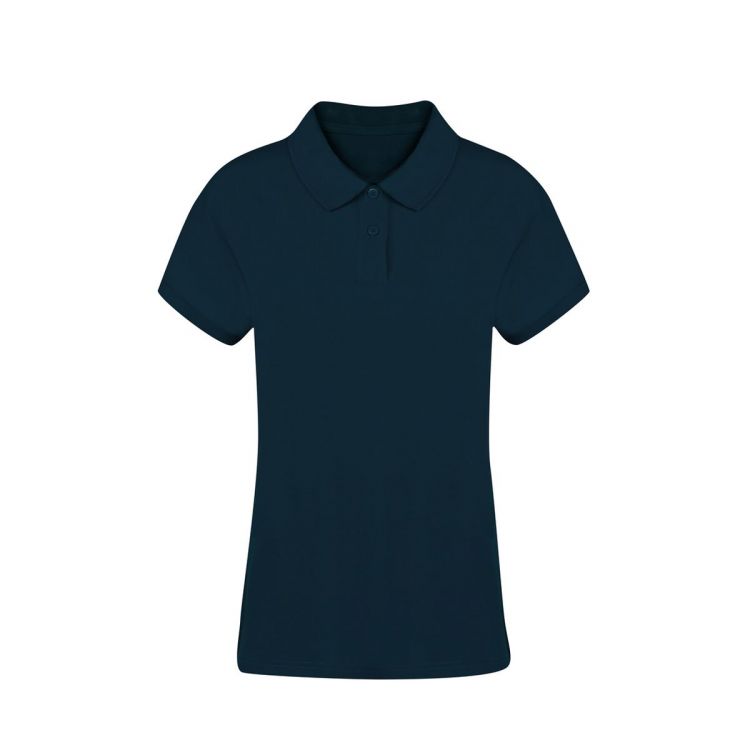 Woman short sleeve polo shirt, made of 100% combed cotton pique Ring Spun, 220g/m2. Soft feel and modern cut, with side openings at the hem and available in a wide range of colours. Two-button placket, with double-stitched hem and sleeves for extra durability and resistance to intensive use. Easily removable label. Available in sizes S, M, L, XL y XXL. (navy blue color, size M)