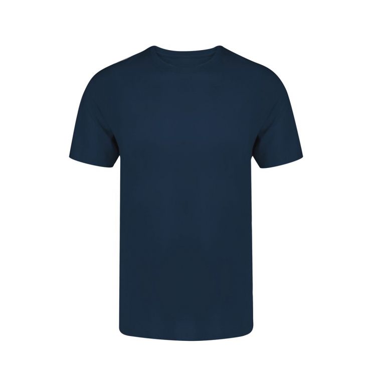 Adult T-shirt made from smooth knit fabric with 100% cotton and 160g/m² Single Jersey style. Soft touch and modern fit, made from tubular fabric without side seams. Narrow round neck in 2x2 rib. Double stitching on hem and sleeves for greater durability and resistance to heavy use. Easily removable label. Available in a range of fashionable colors and in sizes S, M, L, XL, XXL, and 3XL. (navy blue color, size XXXL)