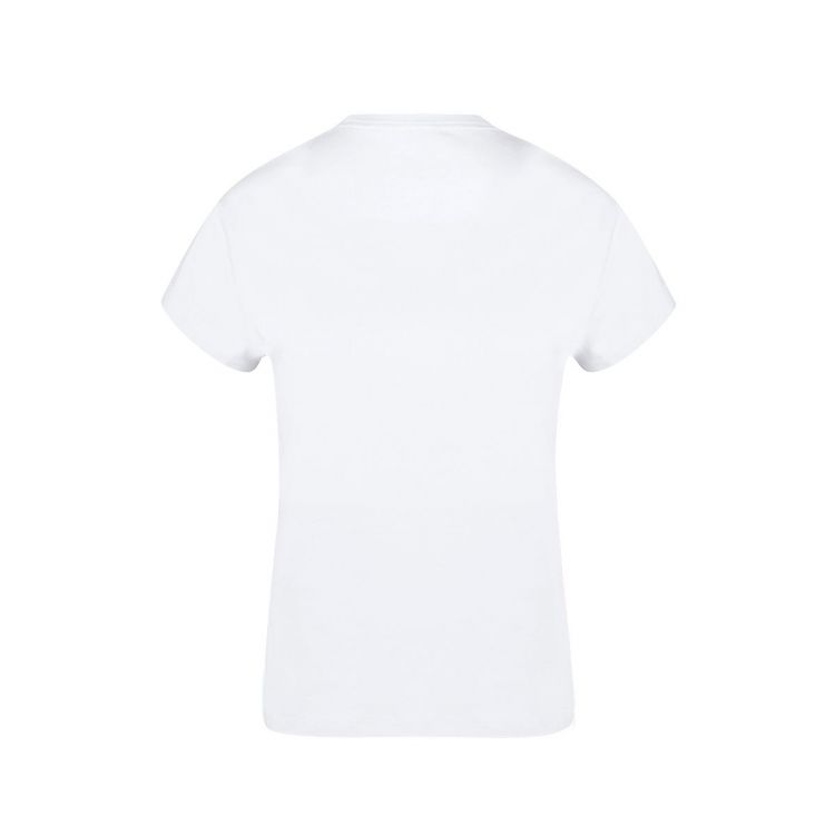 Women's T-shirt made from smooth knit fabric with soft 100% cotton, 160g/m². Tubular design without side seams and round neck. Available in white and in sizes S, M, L, XL, XXL.