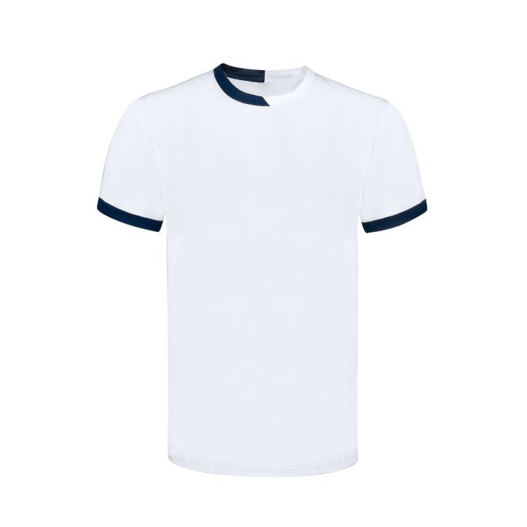 Adult technical T-shirt in 100% polyester 135g/m2. Made of comfortable and soft breathable fabric with round neck. Original two-tone design, with details on the lower part of the sleeves and two-tone contrasting collar. Available in sizes XS, S, M, L, XL, XXL.