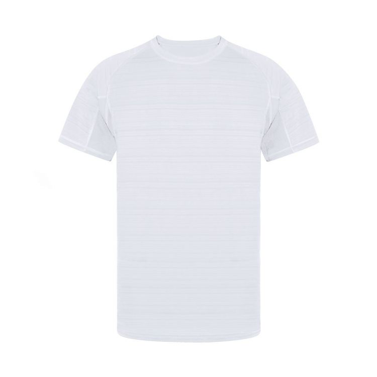Unisex technical T-shirt with original striped design, in combination with breathable micro-perforated fabric in armpits and sides. Made of soft 100% polyester 135g/m2 material, being a very comfortable, light and breathable T-shirt, ideal for sports and also for everyday use. Modern cut, raglan sleeves and round neck, with double stitched hem and double fabric sleeves for greater durability and resistance to intensive use. Available in sizes XS, S, M, L, XL and XXL.