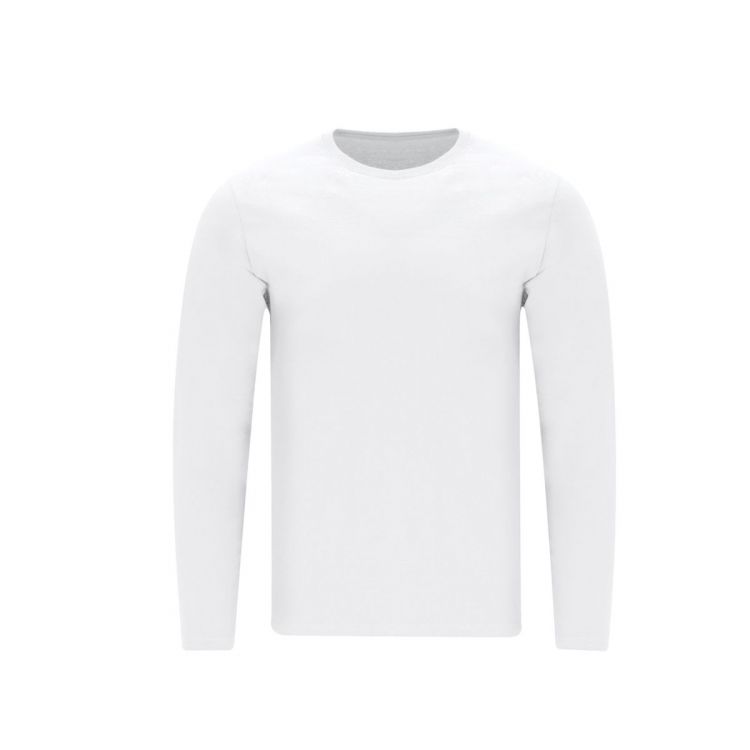 Adult size, long sleeve T-shirt in white colour, soft and nice to the touch in 100% cotton, 160 g/m2 plain jersey. Made in tubular fabric, with 1x1 ribbed round neck and matching, reinforced seam cover in white.