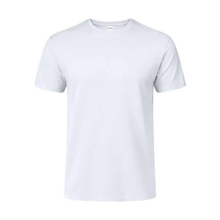 Adult T-shirt made from smooth knit fabric with soft 100% cotton, 160g/m². Tubular design without side seams and round neck. Available in white and in sizes S, M, L, XL, XXL, 3XL.