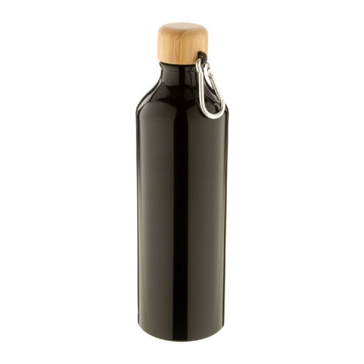 Aluminium bottle with bamboo lid and carabiner, 800 ml, in black color