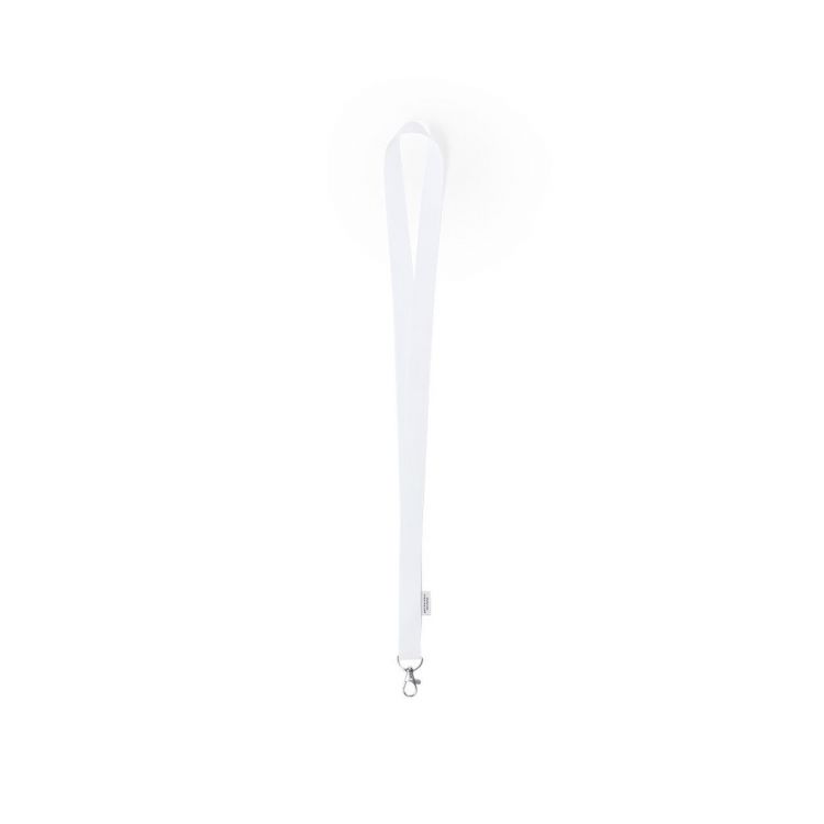 Antibacterial lanyard in white polyester with metal carabiner. Products with antibacterial treatments are able to drastically reduce the bacterial loads present on the surfaces of the materials, thanks to the incorporation of permanent static microbial agents, with high effectiveness in inhibiting and preventing bacterial contamination.Article according to the ISO 22196 standard, which determines the antibacterial activity in plastic materials and non-porous surfaces, which allows us to know the effectiveness of microbial inhibition that the additives have on the treated objects by means of a quantitative evaluation. (white color)