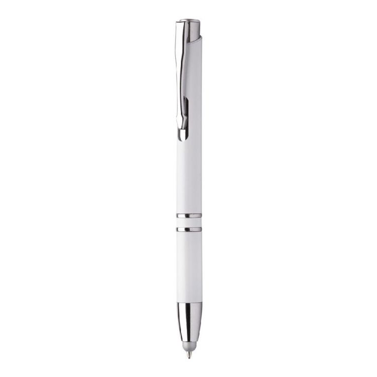 Antibacterial plastic ballpoint and touch screen pen with blue refill. ISO 22196 compliant, in white color