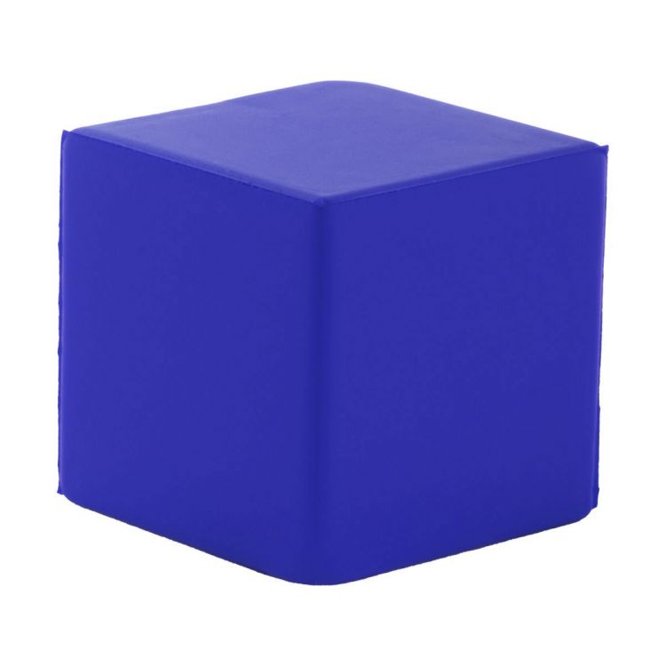 Cube shaped antistress ball in PU foam.
