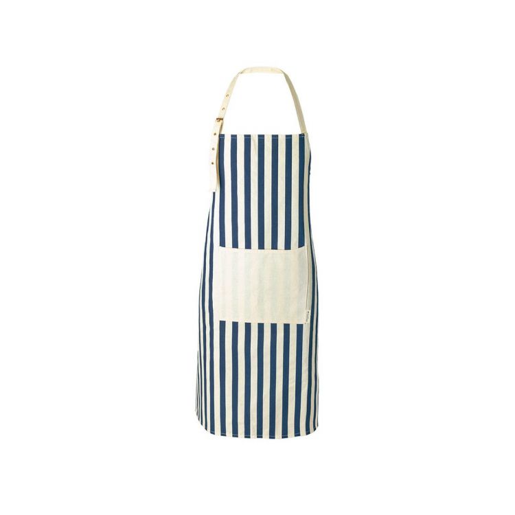 Nature line apron made of organic cotton material, grown using sustainable methods, without insecticides, fertilizers or other chemicals, thus favoring the care of the environment. Innovative, vertically striped design, with front pocket in natural color and fitting under the knee. Adjustable, with straps on neck and waist. Distinctive organic cotton label.